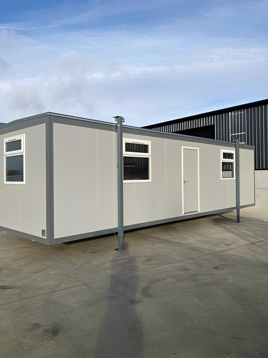 Our 32ft jackleg portable office cabin combines durability with flexibility, offering a professional workspace that meets various needs. Its robust construction, customizable finishes, and thoughtful internal features make it a practical choice for both short-term and long-term applications.